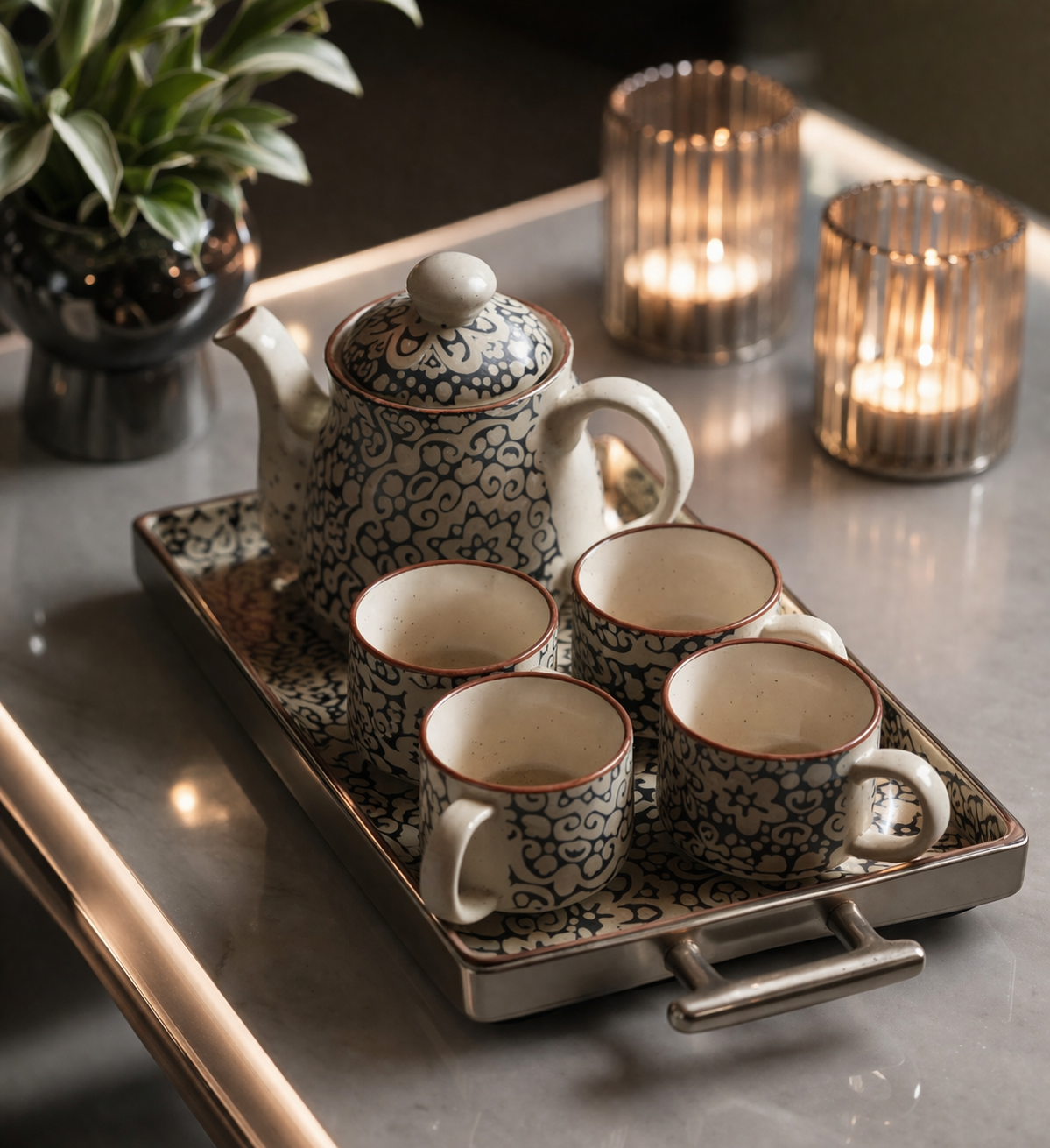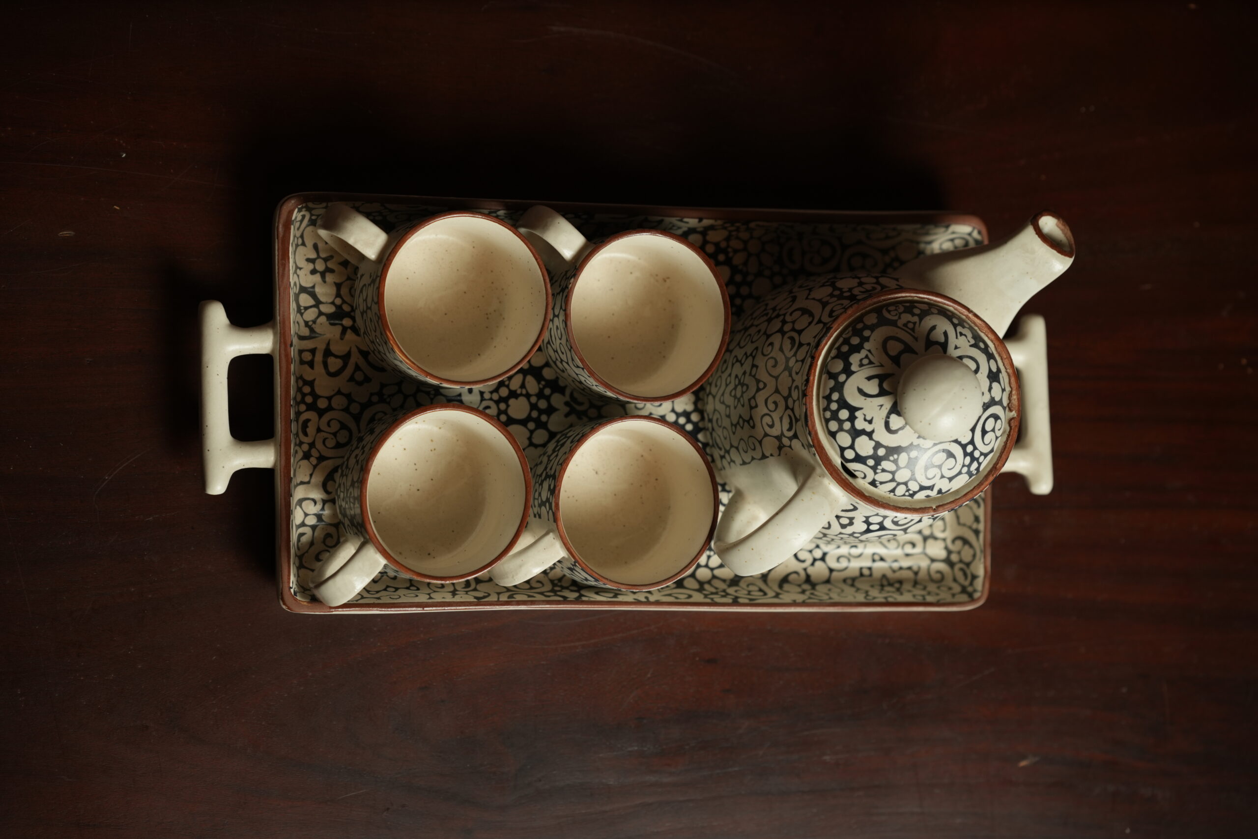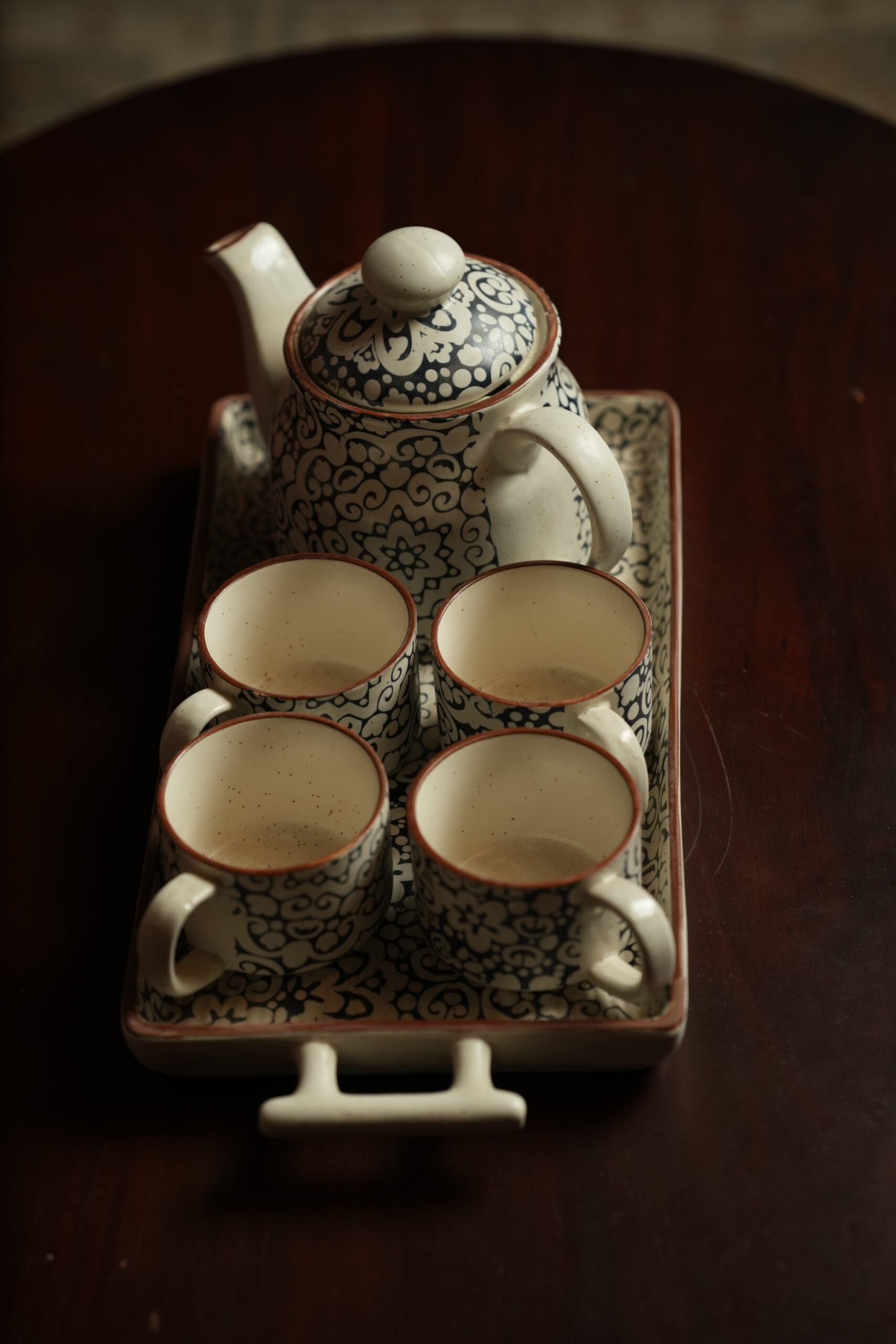 Complete 6-Piece Set: 1 teapot + 4 cups + 1 serving tray