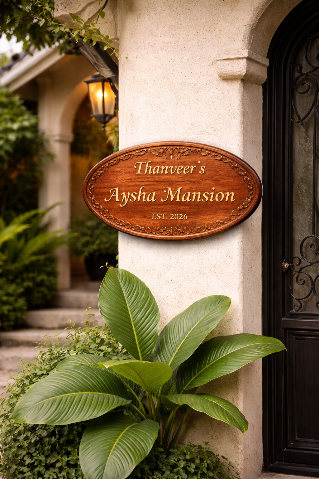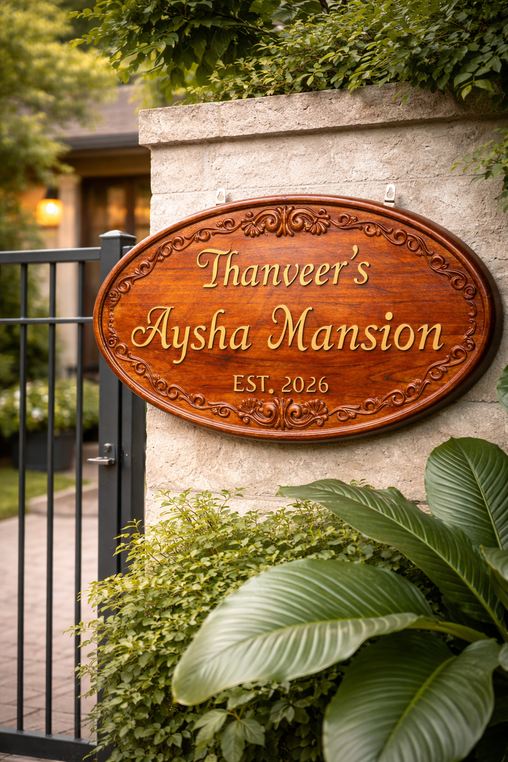 Create a warm and elegant first impression with this handcrafted wooden house name plate, designed to bring a touch of classic luxury and personalization to your home entrance.