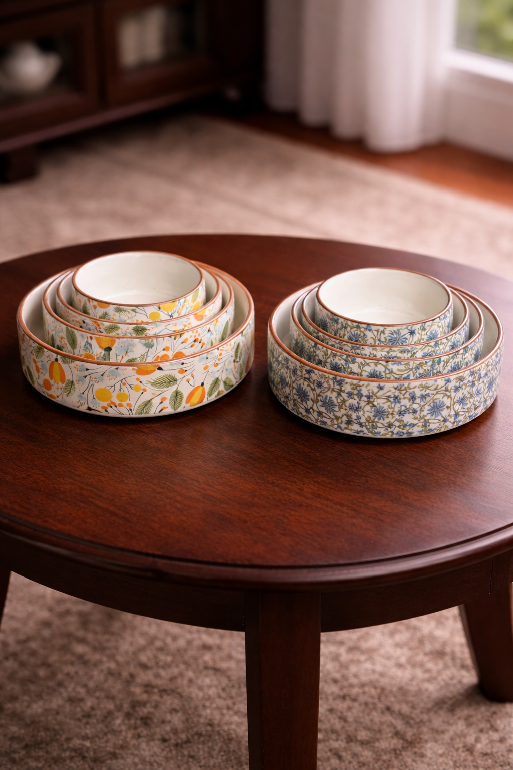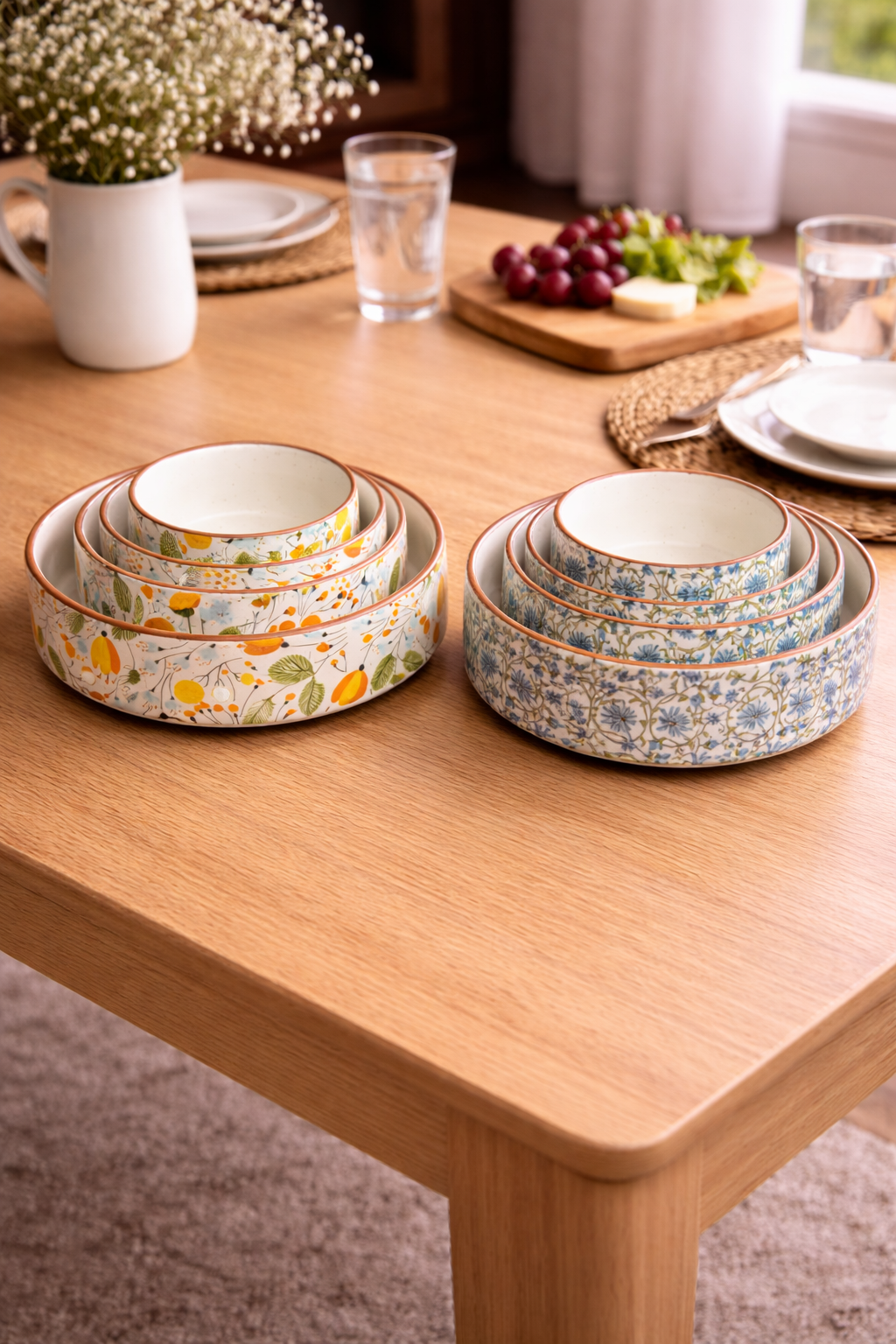 Bring elegance and charm to your dining experience with this beautiful ceramic bowl set, featuring intricate floral and botanical patterns. Designed to combine functionality with artistic appeal, this set includes multiple bowl sizes, perfect for serving a variety of dishes in style.